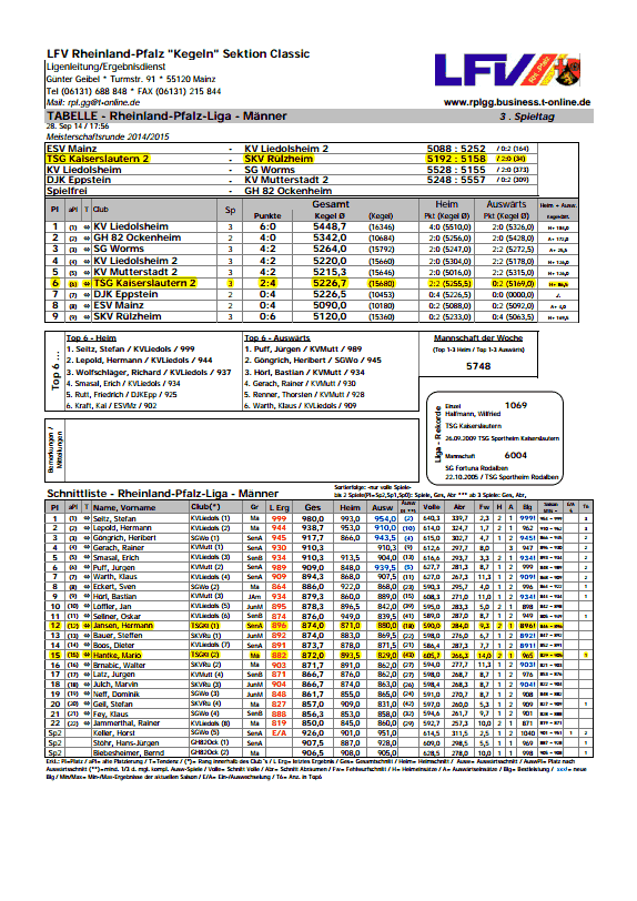 Spielpläne können am Kopf der Tabellen z.B. "KVL 1" aufgerufen werden.