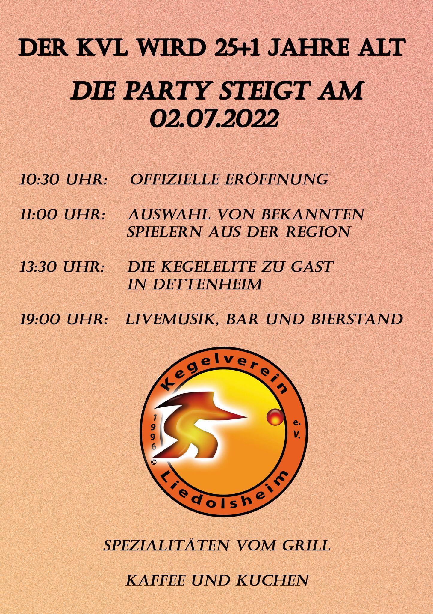 Am vergangenen Samstag war die Kegelelite Deutschlands erneut in Dettenheim zu Gast um gemeinsam das 25+1 Jubiläum zu feiern.
